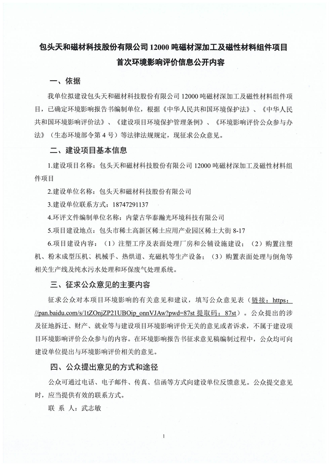 包头尊龙凯时人生就是博磁材科技股份有限公司12000吨磁材深加工及磁性材料组件项目第一次公示.pdf